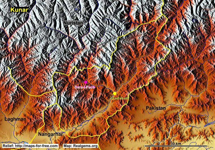 Deposits: Dara-i-Pech (Pech, Pech Dara, Peech) Map Relief: by kind permission of http://maps-for-free.com, Hans Braxmeier. Copyright / "Copyleft" |